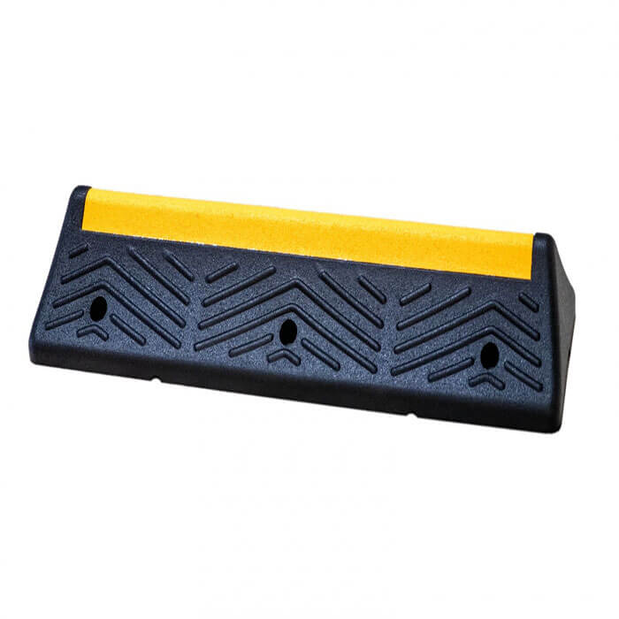 The heavy duty version of the wheel stop is a massive parking space restriction and manoeuvring aid for trucks, buses and other large vehicles designed for long-term use. The wheel stop prevents damage to vehicles, buildings and machinery by allowing the vehicle to roll only until the tyre is in contact with the sill.